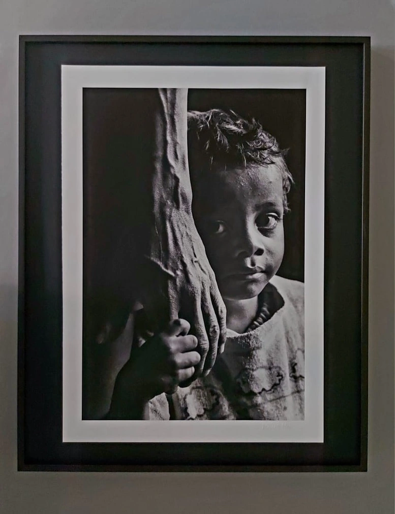 Dans un noir et blanc saisissant, un enfant malgache serre la main d’un adulte, symbole de protection et de lien. L’intensité du regard traduit à la fois fragilité et confiance, capturant la force des attachements face aux épreuves.
